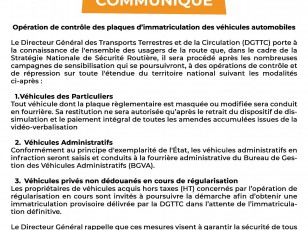 Communiqué relatif à l'opération de contrôle des plaques d’immatriculation des véhicules automobiles