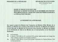 DECRET 2022-631 DU 03 AOUT 2022 MODIFIANT LE DECRET 2016 864 DU 03 NOVEMBRE 2016 PORTANT REGLEMENTATION DE L’USAGE DES VOIES ROUTIERES OUVERTES A LA CIRCULATION PUBLIQUE